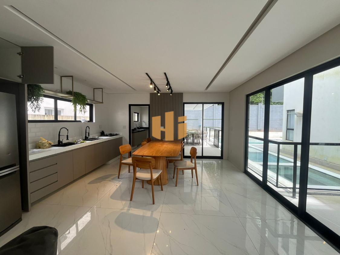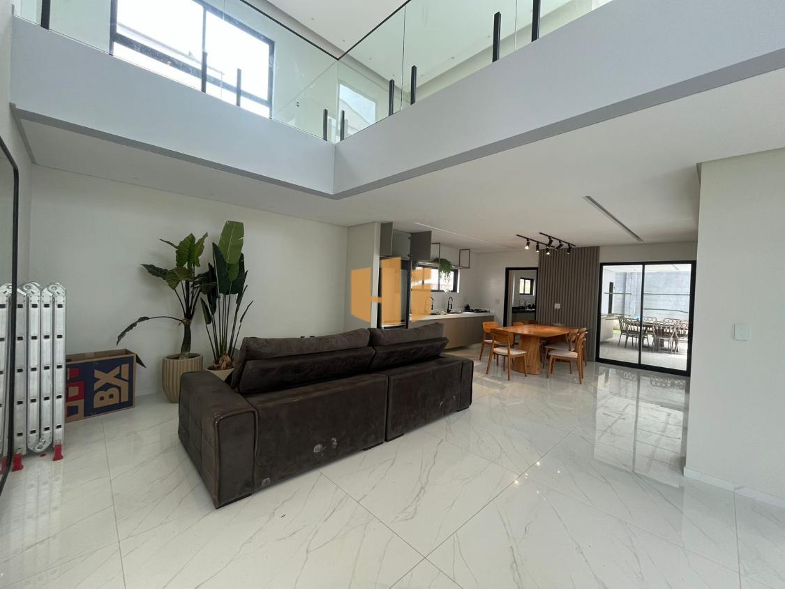 Sala de estar e jantar integradas à cozinha e área gourmet