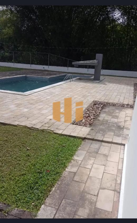 4 suítes, mais dependência, três salas, cozinha, área de serviço, lavabo, piscina, churrasqueira, campo de futebol e vôlei, canil, piscina