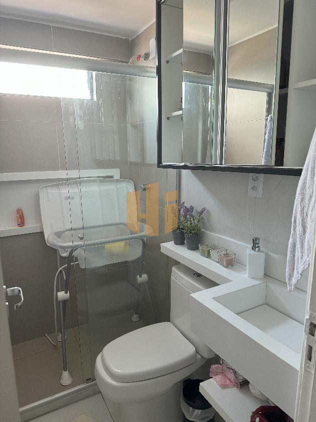 | 01 WC Social todo no porcelanato com armários + espelho + Blindex no Box