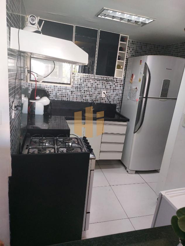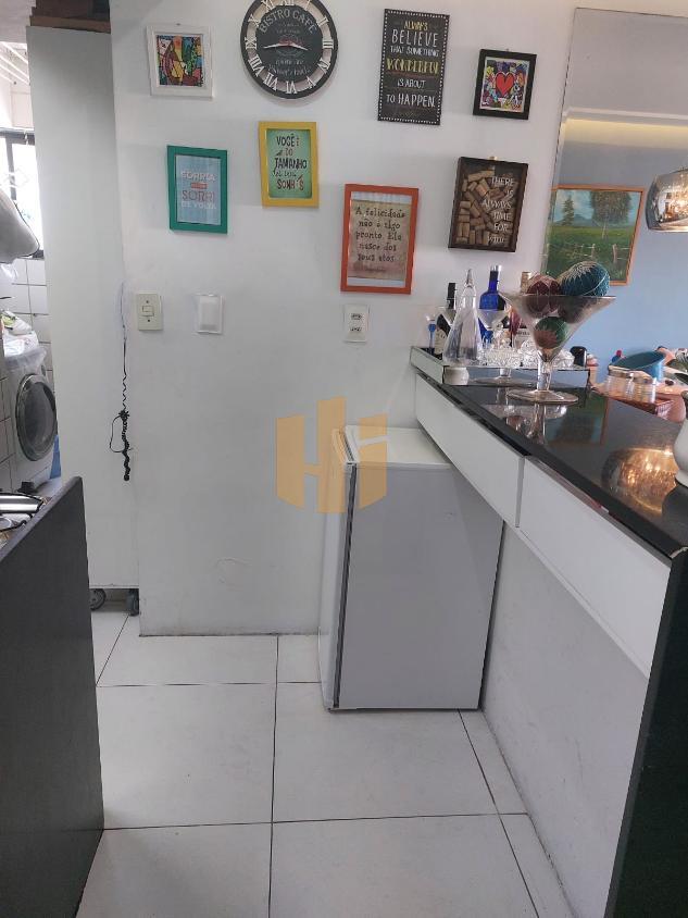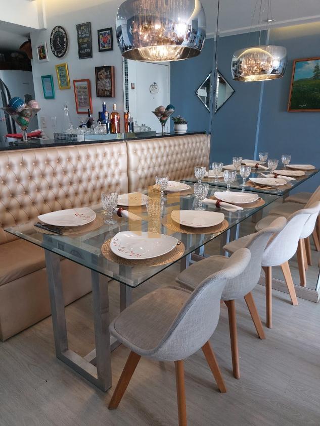 Ampla sala de estar e jantar integradas, cozinha equipada e área de serviço.